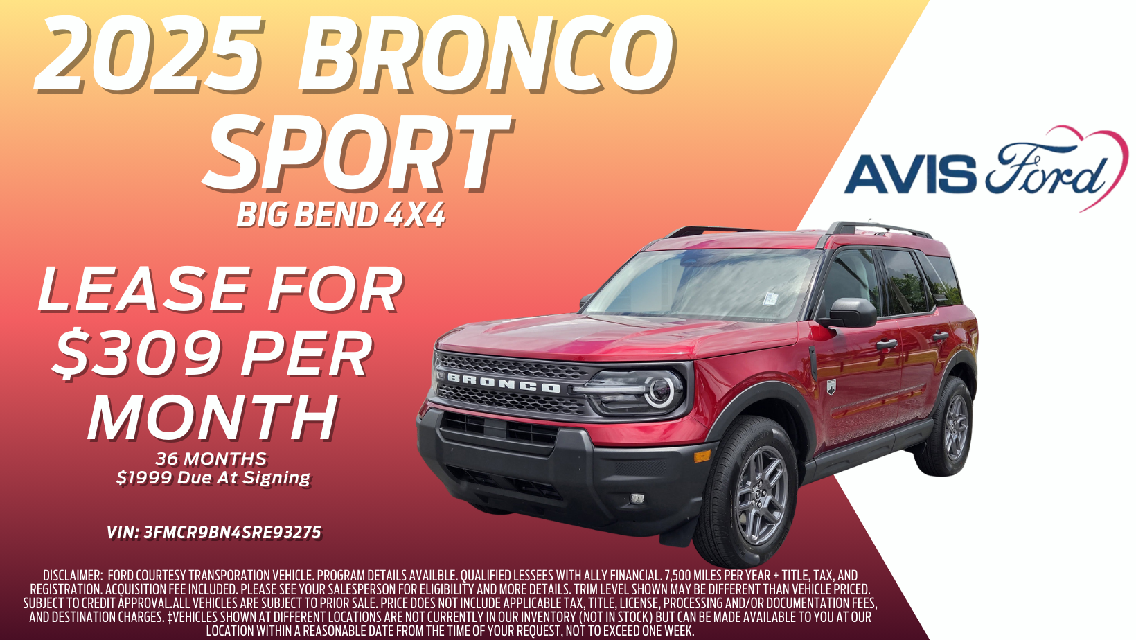 $309/mo for 36 mos with $1999 Due At Signing