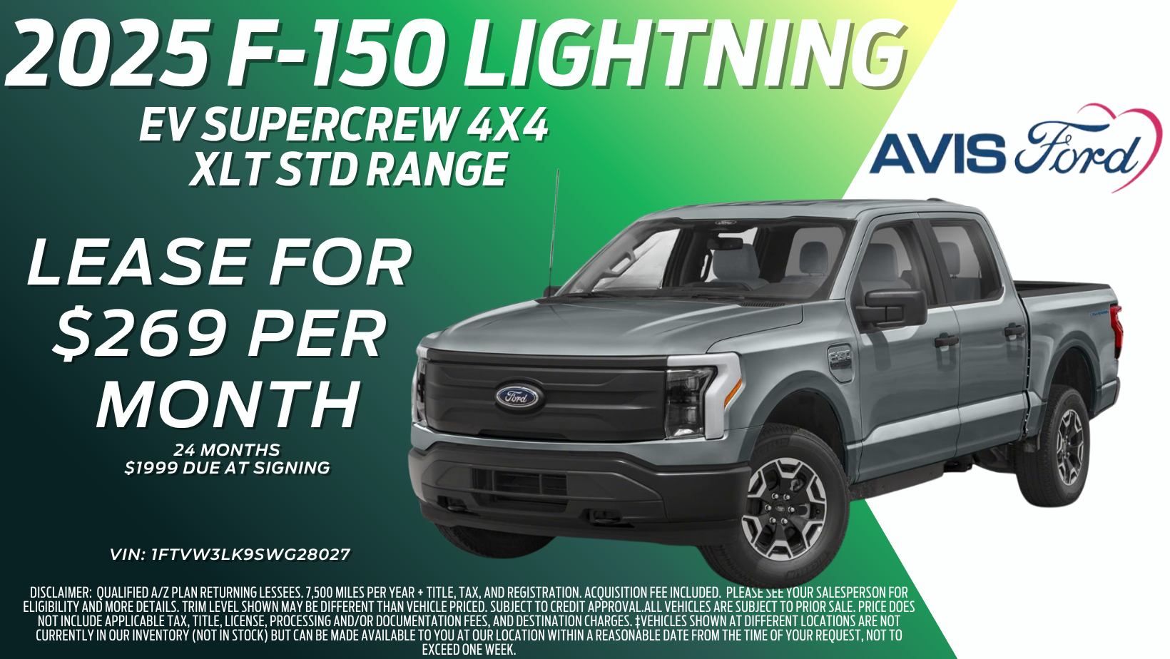 Lease for $269/mo for 24 mos with $1999 Due At Signing