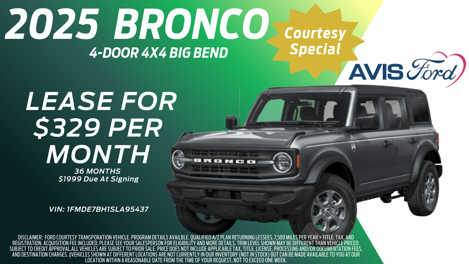 Courtesy Special! 2025 Bronco 4-Door 4x4 Big Bend